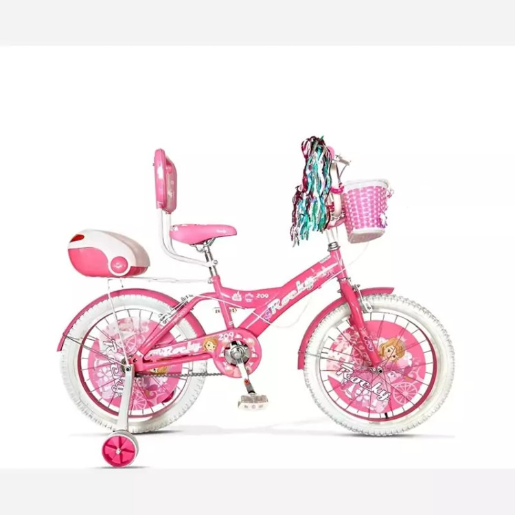 دوچرخه دخترانه راکی با بهترین کیفیت و لوازم فابریک برند اصلی راکی سبد جلو تکیه گاه صندوق پشت ترکبند