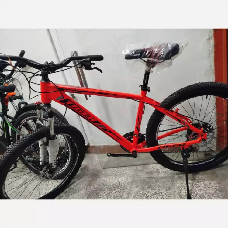 دوچرخه سایز 26 برند TIGER تنه آلومینیوم آلیاژ 6061 ترمز دیسکی لوازم shimano فرمان اور سایز حرفه ای زین فابریک برند کرپی آلومینیوم دوشاخ کمکدار قفلی تنظیمی